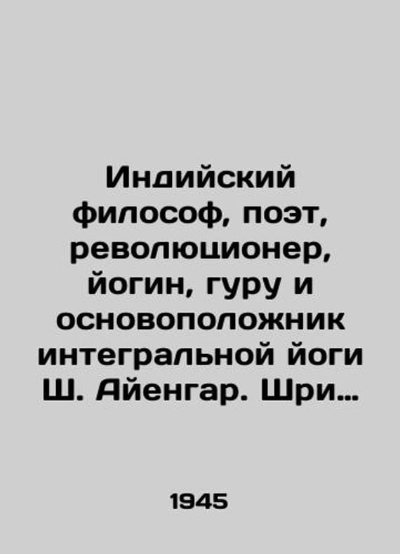 Indian philosopher, poet, revolutionary, yogi, guru, and founder of integral yoga, Sh. Ayengar. Sri Aurobindo. 1945./Indiyskiy filosof, poet, revolyutsioner, yogin, guru i osnovopolozhnik integralnoy yogi Sh. Ayengar. Shri Aurobindo. 1945 g. Calcutta, Aria. 1945. Printed in India. We have thousands of titles and often several copies of each title may be available. Please feel free to contact us for a detailed description of the copies available. SKUbd-b4a8620d5745789.