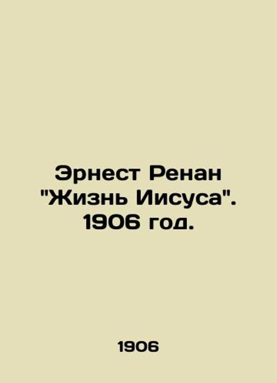 Ernest Renans The Life of Jesus. 1906. /Ernest Renan Zhizn Iisusa. 1906 god. St. Petersburg 1906. Translation without abbreviations from the 19th revised and supplemented edition by E.V.Sviatlovsky. With a portrait of Renan executed by a heligrapher. Renan, Joseph Ernest (1823-1892), a positivist philosopher, historian, and writer. Full scientific translation from the 25th edition by A.S. Usova. Edited and prefaced by academician Alexander Veselovsky. With a portrait of the author. French writer Joseph Ernest Renan (1823-1892) is known as the author of a series of books about the history of early Christianity, Semithological studies, and philosophical dramas.We have thousands of titles and often several copies of each title may be available. Please feel free to contact us for a detailed description of the copies available. The delivery of this book might be delayed beyond the usual timeframe due to extended processing and preparation before shipment, and faster shipping options are not offered. Please inform us if you need the order by a certain date or have a deadline.SKUbd-b4e8f76820d290f6