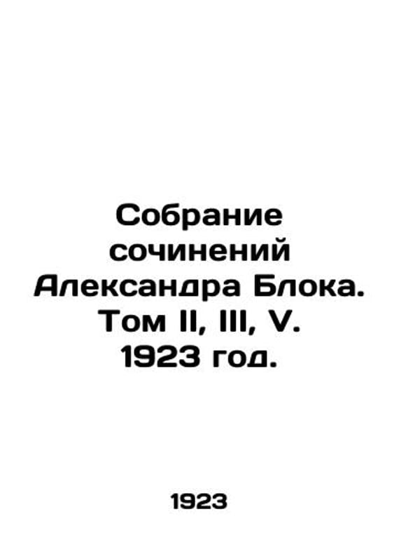 Collection of Works by Alexander Blok. Volume II, III, V. 1923./Sobranie sochineniy Aleksandra Bloka. Tom II, III, V. 1923 god. Volume II: Alconost Publishing House, Berlin, 1923. Volume III, V: Epoch Publishing House, Berlin, 1923. Volume II-Poems. Book II (1904-1916). Volume III-Poems. Book III (1907-1916). Volume V-Theatre (1906-1919). Alexander Alexandrovich Blok (1880-1921) is a Silver Age Russian poet, writer, publicist, playwright, translator, literary critic.We have thousands of titles and often several copies of each title may be available. Please feel free to contact us for a detailed description of the copies available. The delivery of this book might be delayed beyond the usual timeframe due to extended processing and preparation before shipment, and faster shipping options are not offered. Please inform us if you need the order by a certain date or have a deadline.SKUbd-b58c98c529012c6b