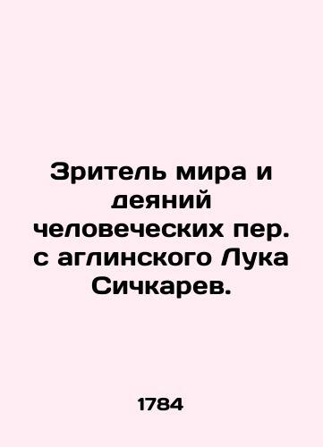 Spectator of the world and of the deeds of men, Luke Sichkarev from Aglin./Zritel mira i deyaniy chelovecheskikh per. s aglinskogo Luka Sichkarev. The Spectator of the World and the Acts of Man from Aglin Luka Sichkarev. St. Petersburg: In the Model at Shnor, 1784. 14, 3-346, 6 p. 20 - 12 sm. We have thousands of titles and often several copies of each title may be available. Please feel free to contact us for a detailed description of the copies available. SKUbd-b8774d64c4b5f6a9.
