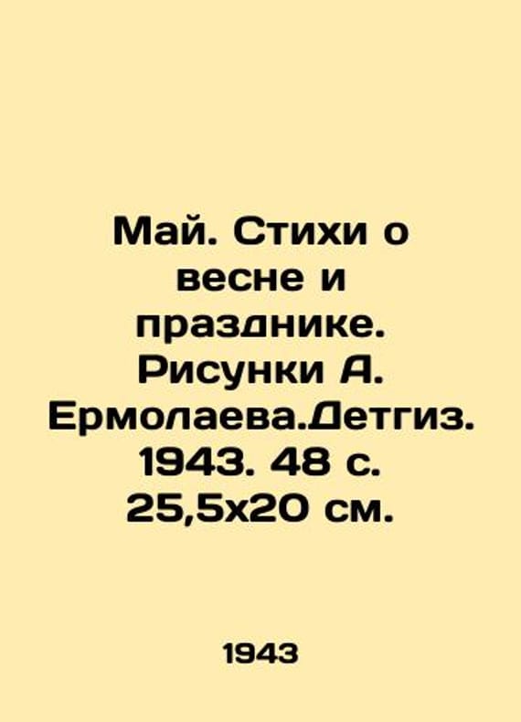 May. Verses about spring and holiday. Sketches by A. Ermolaev. Detgiz. 1943. 48 p. 25,5x20 sm./May. Stikhi o vesne i prazdnike. Risunki A. Ermolaeva.Detgiz. 1943. 48 s. 25,5x20 sm. May. Verses about spring and holiday. Sketches by A. Ermolaev. Detgiz. 1943. 48 p. 25,5x20 sm. We have thousands of titles and often several copies of each title may be available. Please feel free to contact us for a detailed description of the copies available. SKUbd-b877ef21b41d409c.