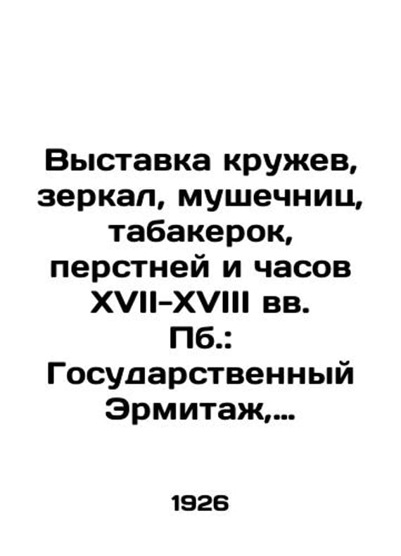 Exhibition of Laces, Mirrors, Mushrooms, Tobacco, Rings, and Watches of the 17th-18th Centuries: The State Hermitage, 1923./Vystavka kruzhev, zerkal, mushechnits, tabakerok, perstney i chasov XVII-XVIII vv. Pb.: Gosudarstvennyy Ermitazh, 1923. Exhibition of Laces, Mirrors, Mushrooms, Tobacco, Rings, and Watches of the 17th-18th Centuries: The State Hermitage, 1923. We have thousands of titles and often several copies of each title may be available. Please feel free to contact us for a detailed description of the copies available. SKUbd-b899dec185d933d0.