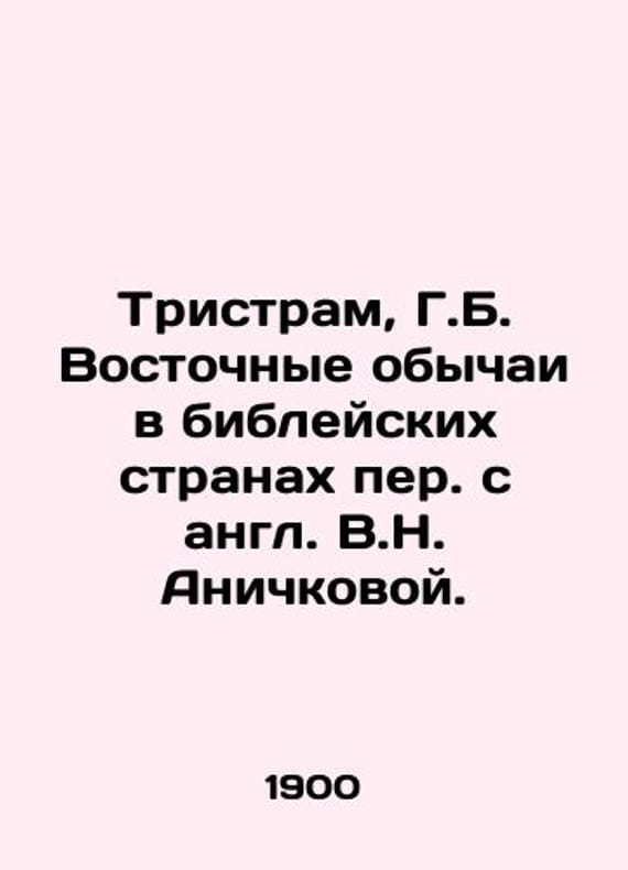 Tristram, G.B. Eastern customs in biblical countries translated from English by V.N. Anichkova./Tristram, G.B. Vostochnye obychai v bibleyskikh stranakh per. s angl. V.N. Anichkovoy. Tristram, G.B. Eastern customs in biblical countries translated from English by V.N. Anichkova. We have thousands of titles and often several copies of each title may be available. Please feel free to contact us for a detailed description of the copies available. The delivery of this book might be delayed beyond the usual timeframe due to extended processing and preparation before shipment, and faster shipping options are not offered. Please inform us if you need the order by a certain date or have a deadline.SKUbd-b8cd33023357622b
