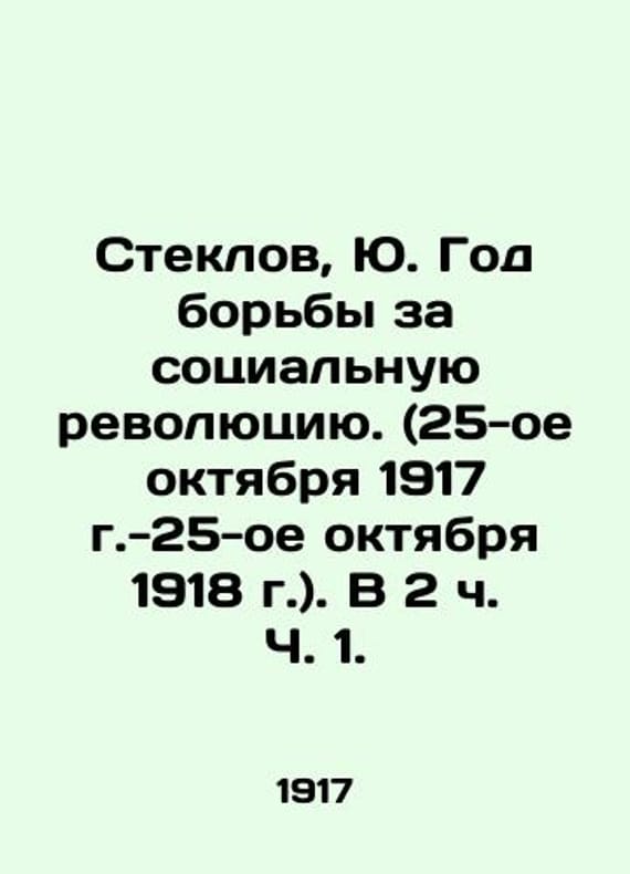 Steklov, Yu. Year of Struggle for Social Revolution (October 25, 1917-October 25, 1918)/Steklov, Yu. God borby za sotsialnuyu revolyutsiyu. (25-oe oktyabrya 1917 g.-25-oe oktyabrya 1918 g.). V 2 ch. Ch. 1. Part 1: Soviet Power and Its Principles. Congresses of Soviets and Constituent Assembly. World Imperialism and Soviet Russia. XVI, 454 p., 2 We have thousands of titles and often several copies of each title may be available. Please feel free to contact us for a detailed description of the copies available. The delivery of this book might be delayed beyond the usual timeframe due to extended processing and preparation before shipment, and faster shipping options are not offered. Please inform us if you need the order by a certain date or have a deadline.SKUbd-b90db8515aa9d47a