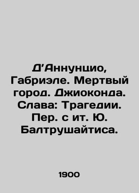 "DAnnunzio, Gabriele. Dead City. Gioconda. Glory: Tragedy. Translated from Yuri Baltrushaitis./DAnnuntsio, Gabriele. Mertvyy gorod. Dzhiokonda. Slava: Tragedii. Per. s it. Yu. Baltrushaytisa. DAnnunzio, Gabriele. Dead City. Gioconda. Glory: Tragedy. Translated from Yu. Baltrushaitis. Moscow: Book Publishing House Skoropis, 1900.-2, 273, 1 p.;. We have thousands of titles and often several copies of each title may be available. Please feel free to contact us for a detailed description of the copies available. SKUbd-b971ef5eb2fbe008."