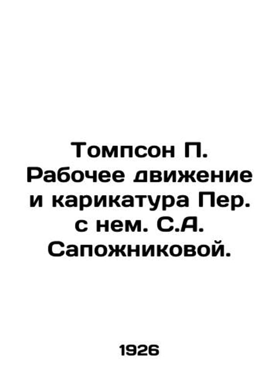"Thompson The Workers Movement and the Cartoon of Sapozhnikova. /Tompson Rabochee dvizhenie i karikatura Per. s nem. S.A. Sapozhnikovoy. Thompson The Workers Movement and the Cartoon of Sapozhnikova. Moscow; L.: Gosizdat, 1926. 108, 4 p. We have thousands of titles and often several copies of each title may be available. Please feel free to contact us for a detailed description of the copies available. SKUbd-b98584f680683c09."