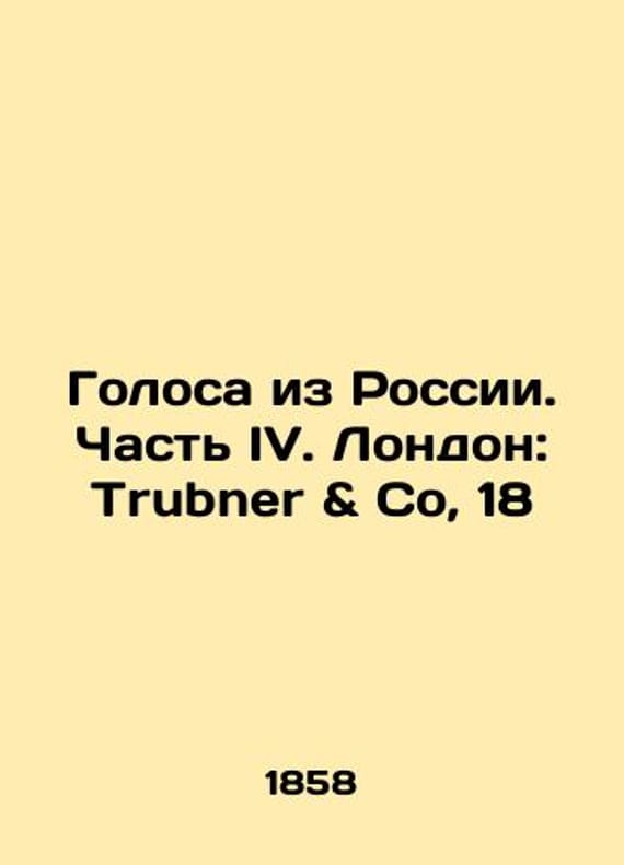 Voices from Russia. Part IV. London: Trubner & Co, 18/Golosa iz Rossii. Chast IV. London: Trubner & Co, 18 Voices from Russia. Part IV. 2nd ed. London: Trubner & Co, 1858. 197 We have thousands of titles and often several copies of each title may be available. Please feel free to contact us for a detailed description of the copies available. SKUbd-b994cc06c002f219.