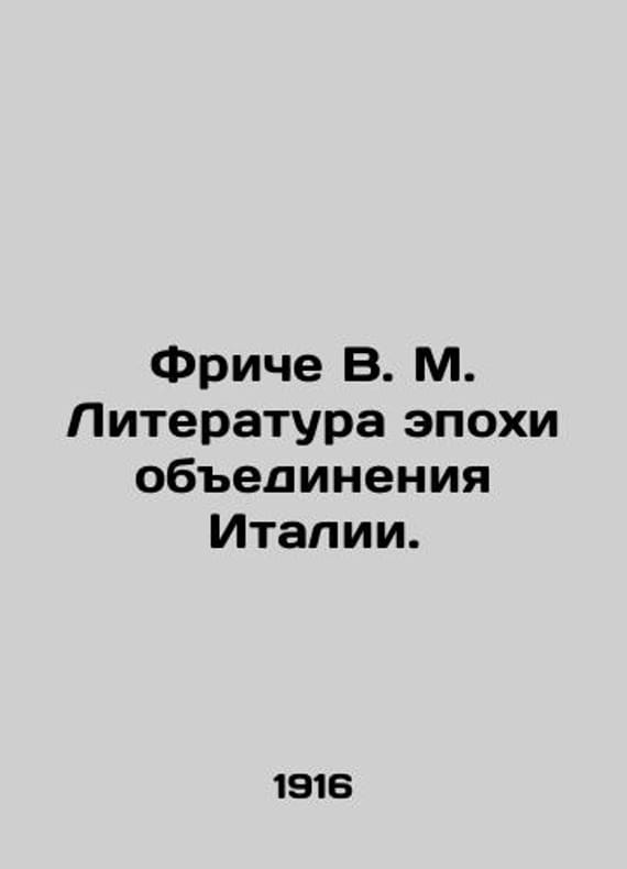 Fritsche V.M. Literature of the Italian Unification Era./Friche V. M. Literatura epokhi obedineniya Italii. 1796 to 1870. M.: Zadruga, 1916. November 4, IV, 4., 248 p.:. We have thousands of titles and often several copies of each title may be available. Please feel free to contact us for a detailed description of the copies available. SKUbd-bb301ec2d44f6cf.