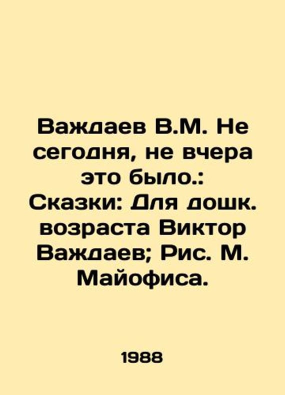 "Vazhaev V.M. Not today, not yesterday it was.: Tales: For pre-school age Viktor Vazhaev; Fig. M. Mayofisa./Vazhdaev V.M. Ne segodnya, ne vchera eto bylo.: Skazki: Dlya doshk. vozrasta Viktor Vazhdaev; Ris. M. Mayofisa. Vazhaev V.M. Not today, not yesterday it was.: Tales: For pre-school age Viktor Vazhaev; Fig. M. Mayofisa.-M.: Malysh, 1988.-91, 4 We have thousands of titles and often several copies of each title may be available. Please feel free to contact us for a detailed description of the copies available. SKUbd-bd07df28f377e01c."