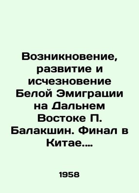 The emergence, development and disappearance of White Emigration in the Far East by Balakshin. Final in China. 1958-1959/Vozniknovenie, razvitie i ischeznovenie Beloy Emigratsii na Dalnem Vostoke Balakshin. Final v Kitae. 1958-1959 Peter Balakshin. Final in China. The emergence, development and disappearance of the White Emigration in the Far East. In two volumes. 1958-1959 San Francisco-Paris-New York. Sirius Book Publishing House. Vol. 1-430 pp., Vol. 2-374 pp., 14.5x20.5 sm. We have thousands of titles and often several copies of each title may be available. Please feel free to contact us for a detailed description of the copies available. SKUbd-bd78e3193b0bda65.