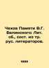 Chekhov in Memory of V.G. Belinsky: Lit. sb. composed of three Russian writers./Chekhov Pamyati V.G. Belinskogo: Lit. sb., sost. iz tr. rus. literatorov. Chekhov in Memory of V.G. Belinsky: Lit. collection of three Russian literary works - Moscow: Penza Society named after M.Yu. Lermontov, 1899.-2, XLVII, 568 p., 3 l. We have thousands of titles and often several copies of each title may be available. Please feel free to contact us for a detailed description of the copies available. SKUbd-be6b5b38c28217e1.