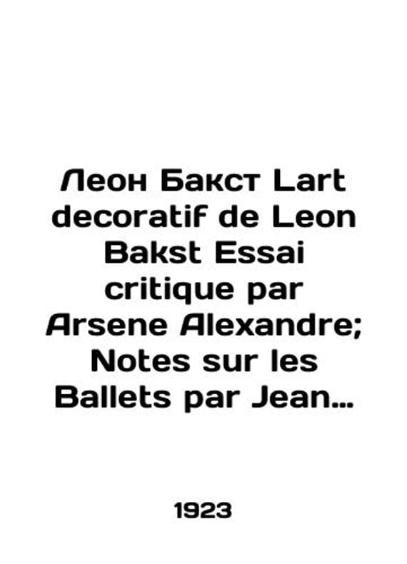 "Leon Bakst Lart decoratif de Leon Bakst Essai critique par Arsene Alexandre; Notes sur les Ballets par Jean Cocteau/Leon Bakst Lart decoratif de Leon Bakst Essai critique par Arsene Alexandre; Notes sur les Ballets par Jean Cocteau. Paris: Maurice de Brunoff. Editeur dart, 1913. 4, 50, 2 s., portr, 77 l.S.Pb. 8. Yakov Sergei Sidorin (1923-1994), prominent St. Petersburg bibliophile, Chairman of the Club of Bibliophiles on Moyka, 12. We have thousands of titles and often several copies of each title may be available. Please feel free to contact us for a detailed description of the copies available. SKUbd-bf3ff3ff26327b7d."