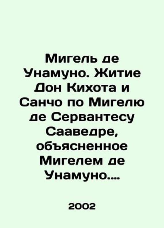 Miguel de Unamuno: The Life of Don Quixote and Sancho by Miguel de Cervantes Saavedra explained by Miguel de Unamuno In Russian (ask us if in doubt)/Migel de Unamuno. Zhitie Don Kikhota i Sancho po Migelyu de Servantesu Saavedre obyasnennoe Migelem de Unamuno Series: Literary Monuments. St. Petersburg Science 2002. 400 p. We have thousands of titles and often several copies of each title may be available. Please feel free to contact us for a detailed description of the copies available. SKUalb629ef3dcf0fec7fe