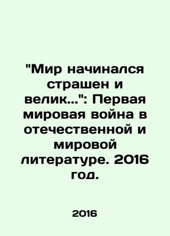 The World Started Terrible and Great..: World War I in domestic and world literature. 2016./Mir nachinalsya strashen i velik..: Pervaya mirovaya voyna v otechestvennoy i mirovoy literature. 2016 god. Publishing House Virtual Gallery. Compiled by O.L. Zaliev and A.E. Rudnik. Moscow, 2016. The catalogue album was compiled from the materials of the exhibition The World Started Terrible and Great.., which took place in the exhibition halls of the Department of State Literary Muse House of I.S. Ostroukhov in Trubniki from September 20 to November 24, 2014.We have thousands of titles and often several copies of each title may be available. Please feel free to contact us for a detailed description of the copies available. The delivery of this book might be delayed beyond the usual timeframe due to extended processing and preparation before shipment, and faster shipping options are not offered. Please inform us if you need the order by a certain date or have a deadline.SKUbd-c08ca4aeada4fb11