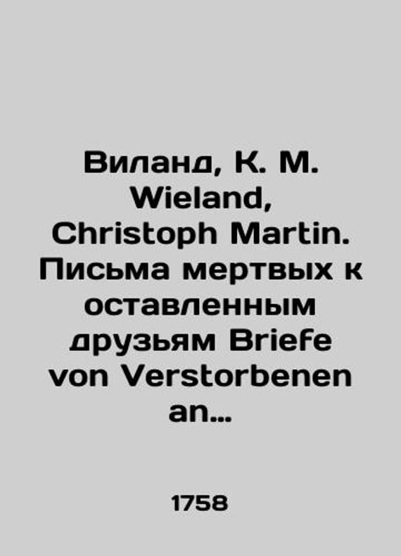 "Wieland, K. M. Wieland, Christoph Martin. Letters from the dead to friends left behind by Briefe von Verstorbenen an Hinterlassene Freunde. Zyrich: Bei Conrad Odell, 1758.-2, 120 p.;/Viland, K. M. Wieland, Christoph Martin. Pisma mertvykh k ostavlennym druzyam Briefe von Verstorbenen an Hinterlassene Freunde. Zyrich: Bei Conrad Odell, 1758.-2, 120 s.; Wieland, K. M. Wieland, Christoph Martin. Letters from the dead to friends left behind by Briefe von Verstorbenen an Hinterlassene Freunde. Zyrich: Bei Conrad Odell, 1758.-2, 120 p.;. We have thousands of titles and often several copies of each title may be available. Please feel free to contact us for a detailed description of the copies available. SKUbd-c0f260d813ff3fe9."