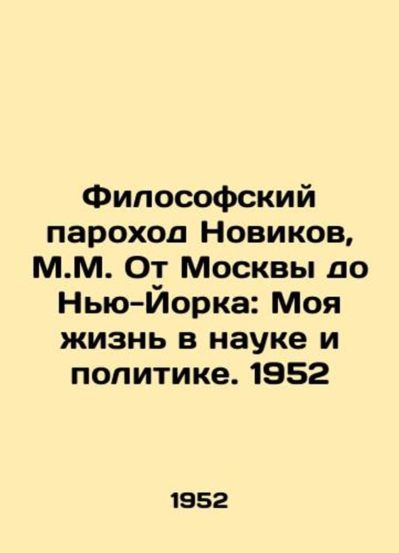 The Philosophical Steamboat Novikov, M.M. From Moscow to New York: My Life in Science and Politics. New York: Chekhov Publishing House, 1952./Filosofskiy parokhod Novikov, M.M. Ot Moskvy do Nyu-Yorka: Moya zhizn v nauke i politike. Nyu-York: Izd-vo im. Chekhova, 1952. The Philosophical Steamboat Novikov, M.M. From Moscow to New York: My Life in Science and Politics. New York: Chekhov Publishing House, 1952. We have thousands of titles and often several copies of each title may be available. Please feel free to contact us for a detailed description of the copies available. SKUbd-746d94b91f3a1eaf.