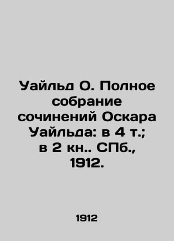 "Wilde O. The Complete Works of Oscar Wilde: in 4 Volume; in 2 Book of St. Petersburg, 1912./Uayld O. Polnoe sobranie sochineniy Oskara Uaylda: v 4 t.; v 2 kn. S.Pb. 1912. With a critical-bio-essay and a portrait of the author; Under the editorship of K.I. Chukovsky. St. Petersburg: A-vo by A.F. Marx, 1912.We have thousands of titles and often several copies of each title may be available. Please feel free to contact us for a detailed description of the copies available. SKUbd-c199d1f3737ef4a1."