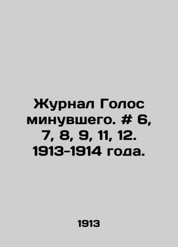 Journal of the Voice of the Past. # 6, 7, 8, 9, 11, 12. 1913-1914./Zhurnal Golos minuvshego. # 6, 7, 8, 9, 11, 12. 1913-1914 goda. 1. Voice of the Past. # 6, June. Journal of the History and History of Literature, published with the constant participation of A.K. Jivelegov, S. Melgunov, N. Sakulin, and V.I. Semevsky. Typography of T-va I.D. Sytin. Moscow, 1913. 2. Voice of the Past. # 7, July. Journal of History and History of Literature, published with the constant participation of A.K. Jivelegov, S. Melgunov, N. Sakulin, and V.I. Semevsky. Typography of T-va I.D. Sytin. Moscow, 1913. 3. Voice of the Past. # 8, August. Journal of History and History of Literature, published with the constant participation of A.K. Jivelegov, S. Melgunov, N. Sakulin, and. We have thousands of titles and often several copies of each title may be available. Please feel free to contact us for a detailed description of the copies available. SKUbd-c2144604b23e55cb.