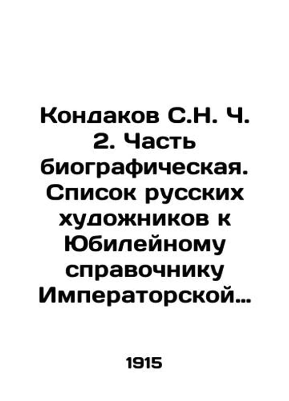 Kondakov S.N. Ch.2. Part biographical. List of Russian artists to the Jubilee reference book of the Imperial Academy of Arts. (1915). 6, VI, 454, 6 p./Kondakov S.N. Ch. 2. Chast biograficheskaya. Spisok russkikh khudozhnikov k Yubileynomu spravochniku Imperatorskoy Akademii khudozhestv. (1915). 6, VI, 454, 6 s. Kondakov S.N. Ch.2. Part biographical. List of Russian artists to the Jubilee reference book of the Imperial Academy of Arts. (1915). 6, VI, 454, 6 We have thousands of titles and often several copies of each title may be available. Please feel free to contact us for a detailed description of the copies available. SKUbd-5bbe887b8ebbb481.