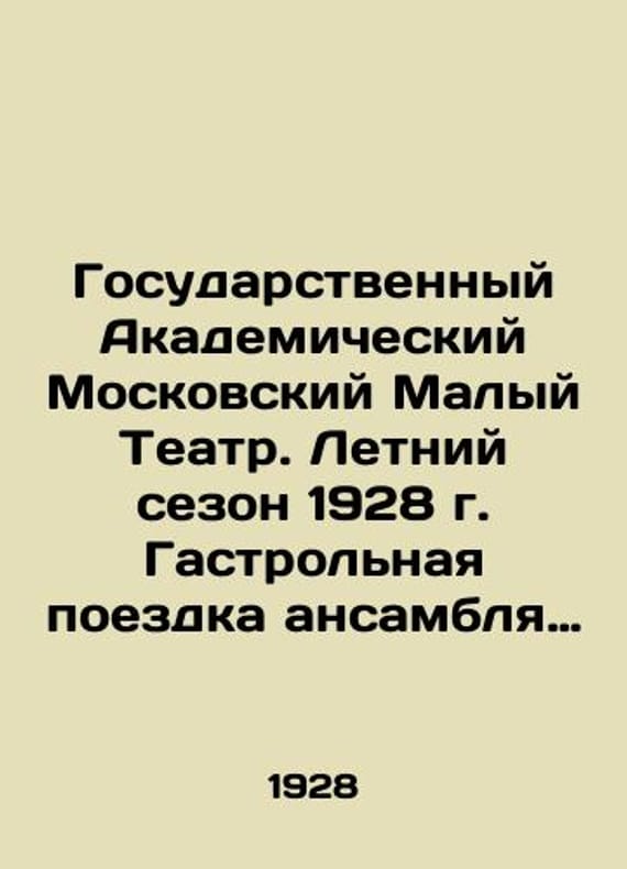 The State Academic Moscow Maly Theatre. Summer season 1928. Tour of the ensemble of artists of the Maly Theatre State Academic Theatre in the cities of the USSR./Gosudarstvennyy Akademicheskiy Moskovskiy Malyy Teatr. Letniy sezon 1928 g.Gastrolnaya poezdka ansamblya artistov GAM Malogo Teatra po gorodam SSSR. Moscow. State Council of the RSFSR 1928. 44s.We have thousands of titles and often several copies of each title may be available. Please feel free to contact us for a detailed description of the copies available. SKUbd-5aa3b46a5f8c3646.