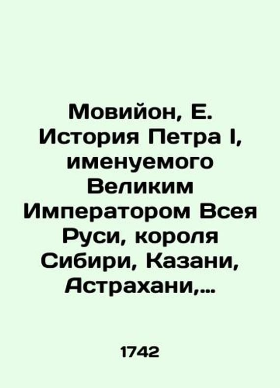 Movillon, E. The story of Peter I, called the Great Emperor of All Russia, the King of Siberia, Kazan, Astrakhan, the Grand Duke of Moscow, etc., supplemented by battle plans and images of medals. Mauville, El. Histoire de Pierre I. Surnomme Le Grand, empereur de toutes les Russies. In 3 Vol. 1. Amsterdam, Leipzig: Chez Arkstee et Mercus, 17./Moviyon, E. Istoriya Petra I, imenuemogo Velikim Imperatorom Vseya Rusi, korolya Sibiri, Kazani, Astrakhani, Velikogo knyazya Moskovskogo i proch., dopolnennaya planami srazheniy i izobrazheniyami medaley. Mauvillon, El. Histoire de Pierre I. Surnomme Le Grand, empereur de toutes les Russies. Na fr. yaz. V 3 t. T. 1. Amsterdam, Leyptsig: Chez Arkstee et Mercus, 17 Movillon, E. The story of Peter I, called the Great Emperor of All Russia, the King of Siberia, Kazan, Astrakhan, the Grand Duke of Moscow, etc., supplemented by battle plans and images of medals. Mauville, El. Histoire de Pierre I. Surnomme Le Grand, empereur de toutes les Russies. In 3 Vol. 1. Amsterdam, Leipzig: Chez Arkstee et Mercus, 1742.We have thousands of titles and often several copies of each title may be available. Please feel free to contact us for a detailed description of the copies available. SKUbd-c419ce26391fc4ca.