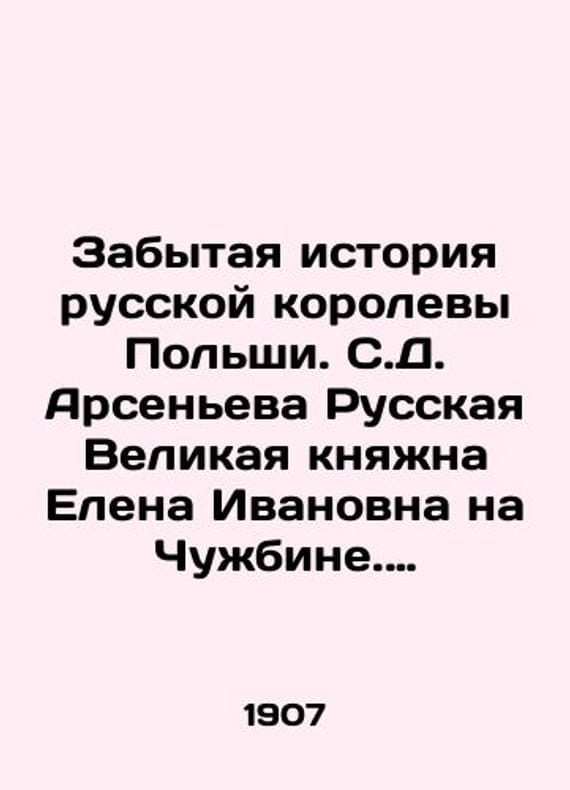 The Forgotten History of the Russian Queen of Poland. S. D. Arsenyev Russian Grand Duchess Elena Ivanovna on Chuzhbin. Page from the History of Western Rus. St. Petersburg. Type. Balyansky. 1907. 62 pp./Zabytaya istoriya russkoy korolevy Polshi. S.D. Arseneva Russkaya Velikaya knyazhna Elena Ivanovna na Chuzhbine. Stranichka iz istorii Zapadnoy Rusi. S.Pb.Tip. Balyanskogo. 1907. 62 str. The Forgotten History of the Russian Queen of Poland. S. D. Arsenyev Russian Grand Duchess Elena Ivanovna on Chuzhbin. Page from the History of Western Rus. St. Petersburg. Type. Balyansky. 1907. 62 pp.We have thousands of titles and often several copies of each title may be available. Please feel free to contact us for a detailed description of the copies available. SKUbd-c49dee8213cf16f3.