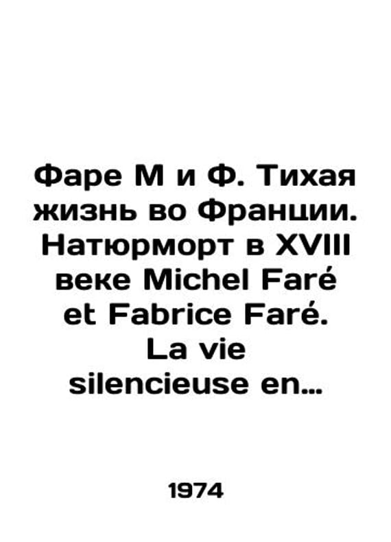 "Fare M and F. The Quiet Life in France. Still Life in the 18th Century Michel Fare et Fabrice Fare. La vie silencieuse en France. La nature morte au XVIIIe siecle. Fribourg, Office du Livre, 1974-1976. 412; 435 p./Fare M i F. Tikhaya zhizn vo Frantsii. Natyurmort v XVIII veke Michel Fare et Fabrice Fare. La vie silencieuse en France. La nature morte au XVIIIe siecle. Fribourg, Office du Livre, 1974-1976. 412; 435 s. Fare M and F. The Quiet Life in France. Still Life in the 18th Century Michel Fare et Fabrice Fare. La vie silencieuse en France. La nature morte au XVIIIe siecle. Fribourg, Office du Livre, 1974-1976. 412; 435We have thousands of titles and often several copies of each title may be available. Please feel free to contact us for a detailed description of the copies available. SKUbd-c4b7e7f30581088e."