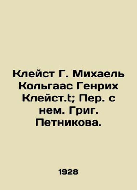 "Kleist G. Michael Kolgaas Heinrich Kleist.t; Translated with him. Grig. Petnikova./Kleyst G. Mikhael Kolgaas Genrikh Kleyst.t; Per. s nem. Grig. Petnikova. Kleist G. Michael Kolgaas Heinrich Kleist.t; Translated with him. Grig. Petnikova. We have thousands of titles and often several copies of each title may be available. Please feel free to contact us for a detailed description of the copies available. SKUbd-c57bf98c9ce4ef0e."