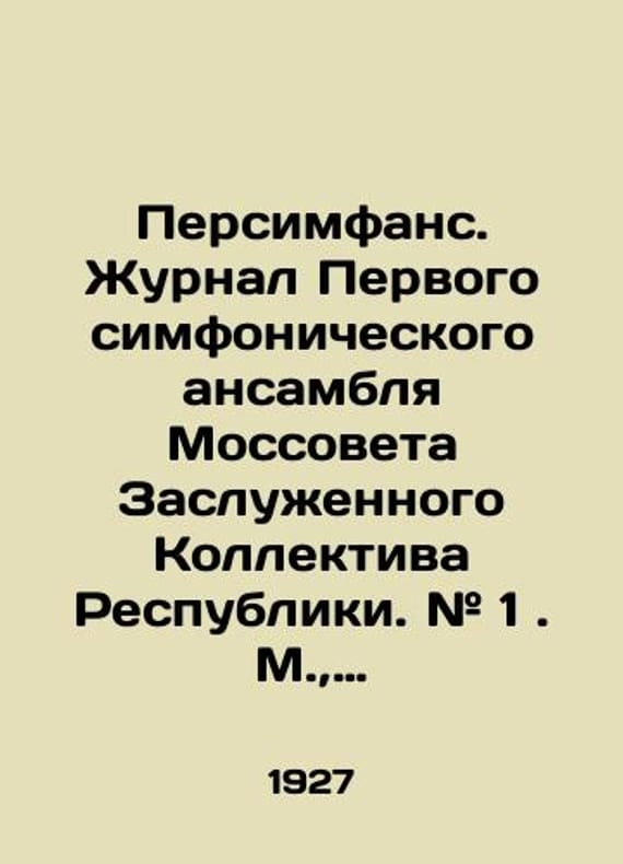 Persymphony. Journal of the First Symphony Ensemble of the Moscow Council of the Honored Collective of the Republic. # 1. Moscow, 1927-1928. Tyre 1600. Persymphony: Journal of the First Symphony Ensemble of the Moscow Council, the Honored Collective of the Republic./Persimfans. Zhurnal Pervogo simfonicheskogo ansamblya Mossoveta Zasluzhennogo Kollektiva Respubliki. # 1. M., 1927-1928. Tir 1600. «Persimfans zhurnal Pervogo simfonicheskogo ansamblya Mossoveta, zasluzhennogo kollektiva Respubliki. Persymphony. Journal of the First Symphony Ensemble of the Moscow Council of the Honored Collective of the Republic. # 1. Moscow, 1927-1928. Tyre 1600. Persymphony: Journal of the First Symphony Ensemble of the Moscow Council, the Honored Collective of the Republic.We have thousands of titles and often several copies of each title may be available. Please feel free to contact us for a detailed description of the copies available. SKUbd-c5ae19e52a6bd280.