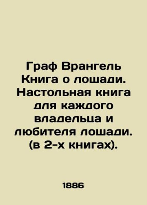 Earl Wrangel The Book of the Horse. A handbook for every horse owner and horse lover. (in 2 books)./Graf Vrangel Kniga o loshadi. Nastolnaya kniga dlya kazhdogo vladeltsa i lyubitelya loshadi. (v 2-kh knigakh). C-Petersburg 1886 t 1898. We have thousands of titles and often several copies of each title may be available. Please feel free to contact us for a detailed description of the copies available. SKUbd-c5f9edb7b37352b7.