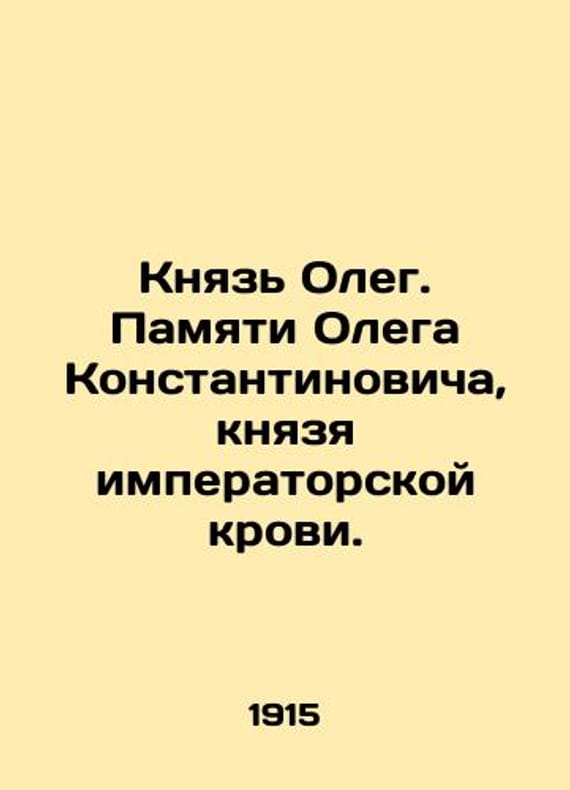 Prince Oleg. In memory of Oleg Konstantinovich, the prince of imperial blood./Knyaz Oleg. Pamyati Olega Konstantinovicha, knyazya imperatorskoy krovi. Prince Oleg. In Memory of Oleg Konstantinovich, the prince of imperial blood. Pg.: T. R. Golika and A. Wilborg, 1915. 2, IV, 204 p. We have thousands of titles and often several copies of each title may be available. Please feel free to contact us for a detailed description of the copies available. SKUbd-c67b7da514dfc113.