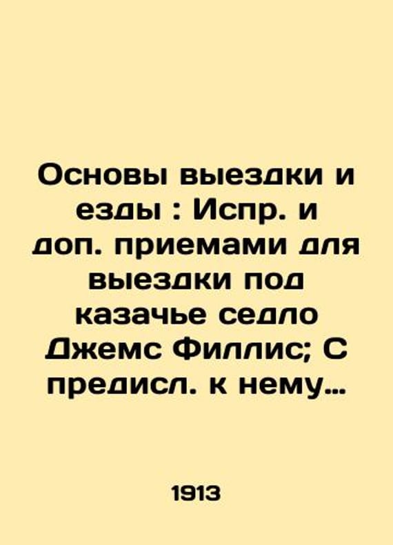 "Basics of dressage and riding: Corrections and additional techniques for dressage under the Cossack saddle by James Phyllis; with a foreword by D. Bagration./Osnovy vyezdki i ezdy: Ispr. i dop. priemami dlya vyezdki pod kazache sedlo Dzhems Fillis; S predisl. k nemu kn. D. Bagrationa. Basics of dressage and riding: Corrections and additional techniques for dressage under the Cossack saddle by James Phyllis; with a foreword to it by D. Bagration. -2nd edition -St. Petersburg: D. Bagration. Officer Cavalry School, 1913. -409We have thousands of titles and often several copies of each title may be available. Please feel free to contact us for a detailed description of the copies available. SKUbd-c7a69bde899a63a6."