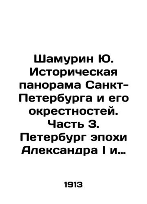 Shamurin Yu. Historical panorama of St. Petersburg and its environs. Part 3. St. Petersburg of the epoch of Alexander I and Nikolai I. 1801-1855/Shamurin Yu. Istoricheskaya panorama Sankt-Peterburga i ego okrestnostey. Chast 3. Peterburg epokhi Aleksandra I i Nikolaya I. 1801-1855 g. M. Edition of Education Partnership, 1913. 29c.We have thousands of titles and often several copies of each title may be available. Please feel free to contact us for a detailed description of the copies available. SKUbd-c7d0f90e649ab7f8.