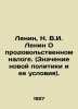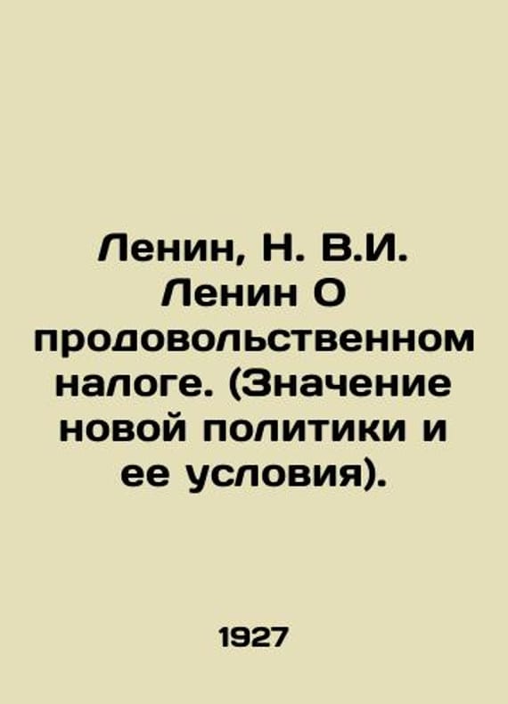 "Lenin, N. V.I. Lenin On the Food Tax. (The Meaning of the New Policy and its Conditions)./Lenin, N. V.I. Lenin O prodovolstvennom naloge. (Znachenie novoy politiki i ee usloviya). Lenin, N. V.I. Lenin On the Food Tax. (The Meaning of the New Policy and its Conditions). Moscow: State Publishing House; 29th Polygraph Printing House. Department of the Moscow State Economic Council under V.Ch.K., 1927. 31, 1 p. (incl. Region). 26.4 - 17.4 sm. We have thousands of titles and often several copies of each title may be available. Please feel free to contact us for a detailed description of the copies available. SKUbd-c7e11765e2058efb."