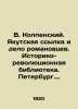 V. Kolpensky. The Yakutsk Exile and the Roman Affair. Historical and Revolutionary Library. St. Petersburg. State Publishing House. 1920. 64 p./V. Kolpenskiy. Yakutskaya ssylka i delo romanovtsev. Istoriko-revolyutsionnaya biblioteka. Peterburg. Gosudarstvennoe izdatelstvo. 1920g. 64s. V. Kolpensky. The Yakutsk Exile and the Roman Affair. Historical and Revolutionary Library. St. Petersburg. State Publishing House. 1920. 64 p. We have thousands of titles and often several copies of each title may be available. Please feel free to contact us for a detailed description of the copies available. SKUbd-df192d23f594775.