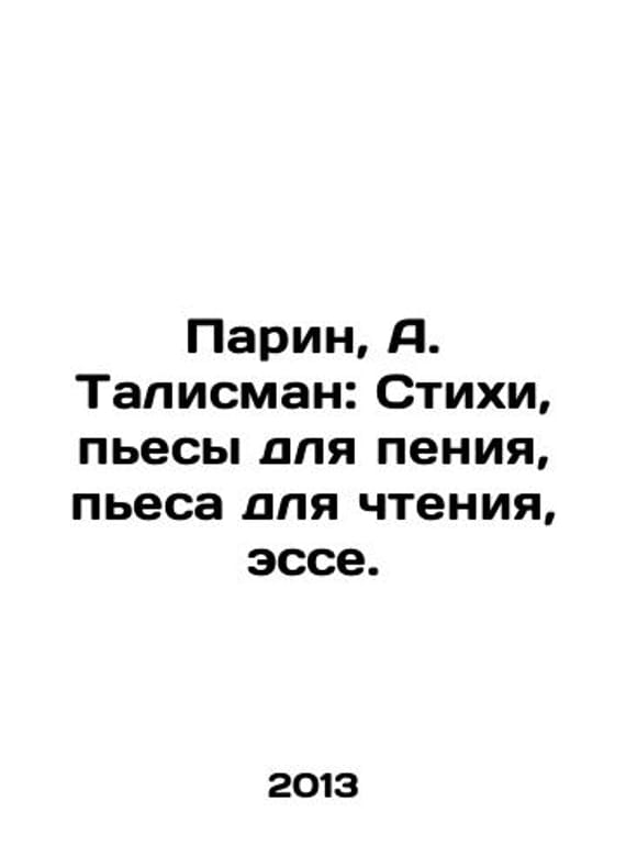 "Paris, A. Talisman: Poems, plays for singing, plays for reading, essays./Parin, A. Talisman: Stikhi, pesy dlya peniya, pesa dlya chteniya, esse. Moscow: Agraph, 2013.-431, 1 p.;. We have thousands of titles and often several copies of each title may be available. Please feel free to contact us for a detailed description of the copies available. SKUbd-c87ac86794a6e84f."