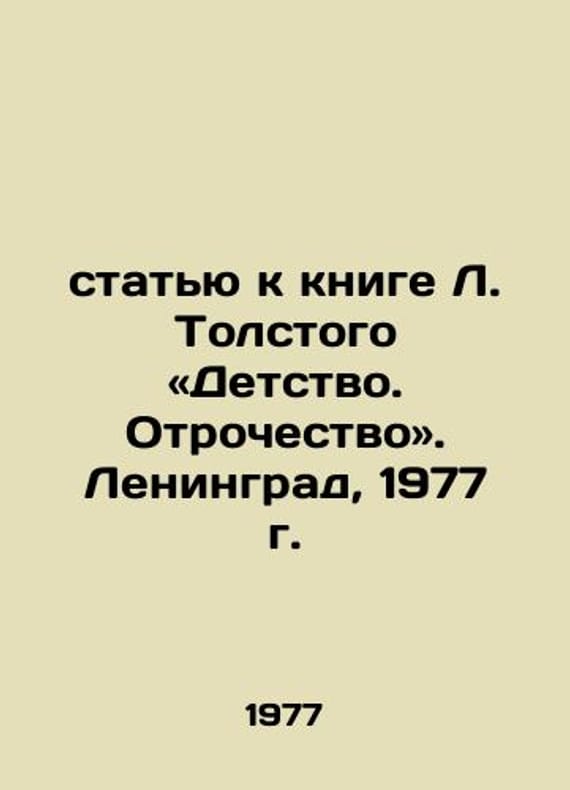 An article for L. Tolstoys book Childhood. Adolescence. Leningrad, 1977./statyu k knige L. Tolstogo «Detstvo. Otrochestvo. Leningrad, 1977 g. Viktor Borisovich Shklovsky (1893-1984) is a Russian Soviet writer, literary critic, film critic, screenwriter, and one of the key figures of Russian formalism.We have thousands of titles and often several copies of each title may be available. Please feel free to contact us for a detailed description of the copies available. SKUbd-c8d1104e149570e6.