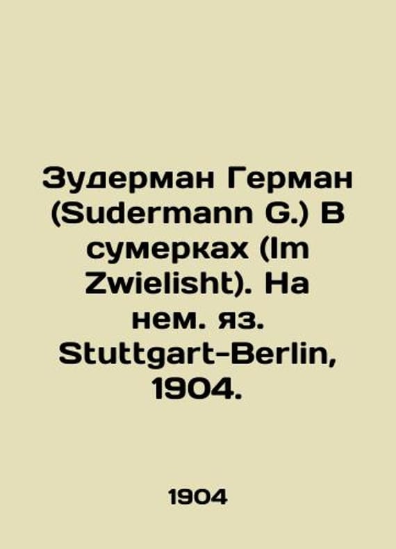 Sudermann G. At dusk (Im Zwielisht). In German: Stuttgart-Berlin, 1904./Zuderman German (Sudermann G.) V sumerkakh (Im Zwielisht). Na nem. yaz. Stuttgart-Berlin, 1904. Sudermann G. At Twilight (Im Zwielisht), Stuttgart-Berlin, 1904, 8, 189 p. We have thousands of titles and often several copies of each title may be available. Please feel free to contact us for a detailed description of the copies available. SKUbd-c93c660065a833b8.