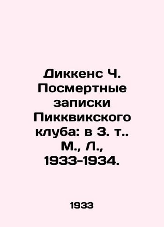 Dickens C. The posthumous notes of the Pickwick Club: in 3 Vol. M., L., 1933-1934./Dikkens Ch. Posmertnye zapiski Pikkvikskogo kluba: v 3. t. M., L., 1933-1934. Translated from English by A. V. Krivtsova, E. Lanna, commentary by G. G. Shpeta, introduction by I. T. Smilgi. M., L.: Academia, 1933, 1934.T. 1. 501, XXIII 1 p.We have thousands of titles and often several copies of each title may be available. Please feel free to contact us for a detailed description of the copies available. SKUbd-c947a649c3d89b74.