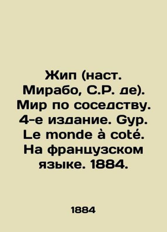Jip (nat. Mirabeau, S.R. de). The World Next Door. 4th Edition. Gyp. Le monde cote. In French. 1884./Zhip (nast. Mirabo, S.R. de). Mir po sosedstvu. 4-e izdanie. Gyp. Le monde a cote. Na frantsuzskom yazyke. 1884. Jip (nat. Mirabeau, S.R. de). The World Next Door. 4th edition. Gyp. Le monde cote. In French. Paris: Calmann Levy, 1884. 4, 322We have thousands of titles and often several copies of each title may be available. Please feel free to contact us for a detailed description of the copies available. SKUbd-ca50794ace235761.