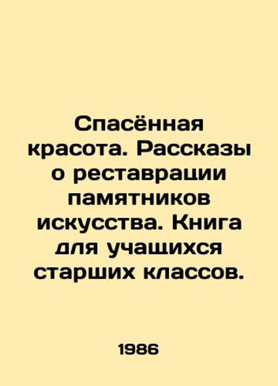 Saved beauty. Stories about restoration of art monuments. A book for high school students./Spasyonnaya krasota. Rasskazy o restavratsii pamyatnikov iskusstva. Kniga dlya uchashchikhsya starshikh klassov. Saved beauty. Stories about restoration of art monuments. A book for high school students. Moscow: Enlightenment, 1986. We have thousands of titles and often several copies of each title may be available. Please feel free to contact us for a detailed description of the copies available. SKUbd-ca7e152aa67be55d.