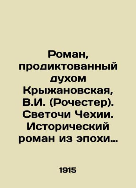 A novel dictated by the spirit of Kryzanovskaya, V.I. (Rochester). The Lights of Bohemia. A historical novel from the period of awakening of Czech national consciousness./Roman, prodiktovannyy dukhom Kryzhanovskaya, V.I. (Rochester). Svetochi Chekhii. Istoricheskiy roman iz epokhi probuzhdeniya cheshskogo natsionalnogo samosoznaniya. Novel dictated by the spirit of Kryzhanovskaya, V.I. (Rochester). Lights of Bohemia. Historical novel from the era of awakening of Czech national identity. Pg.: Book Publishing House, 1915. 379 p. 19.5 - 14 sm.We have thousands of titles and often several copies of each title may be available. Please feel free to contact us for a detailed description of the copies available. SKUbd-cab5869298ce499c.