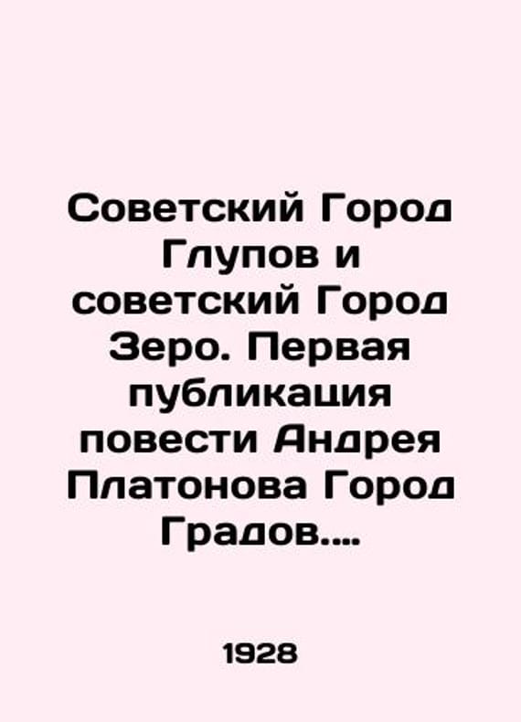The Soviet City of Glupov and the Soviet City of Zero. First publication of Andrei Platonovs novel City of Gradov. Literary and artistic collection of the Red Panorama. 1928. September, October, Leningrad, Krasnaya Gazeta, 1928./Sovetskiy Gorod Glupov i sovetskiy Gorod Zero. Pervaya publikatsiya povesti Andreya Platonova Gorod Gradov. Literaturno-khudozhestvennyy sbornik Krasnoy panoramy. 1928 god. Sentyabr, Oktyabr, Leningrad, Krasnaya gazeta, 1928. The Soviet City of Glupov and the Soviet City of Zero. First publication of Andrei Platonovs novel City of Gradov. Literary and artistic collection of the Red Panorama. 1928. September, October, Leningrad, Krasnaya Gazeta, 1928. We have thousands of titles and often several copies of each title may be available. Please feel free to contact us for a detailed description of the copies available. SKUbd-cbd5683cbe7c0cdd.