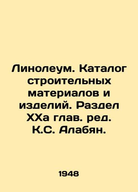 Linoleum. Catalogue of building materials and products. Section XXX. Chief Editor K.S. Alabyan./Linoleum. Katalog stroitelnykh materialov i izdeliy. Razdel KhKha glav. red. K.S. Alabyan. Linoleum. Catalogue of Building Materials and Products. Section XXX. Chief Editor K.S. Alabyan. Moscow: Academy of Architecture of the USSR, 1948. VIII, 16 p., 1 l.: il. 2.. SKUbd-cc43c3d6b0d58af5.We have thousands of titles and often several copies of each title may be available. Please feel free to contact us for a detailed description of the copies available. The delivery of this book might be delayed beyond the usual time due to extended processing and preparation before shipment, and faster shipping options are not offered. Please inform us if you need the order by a certain date or have a deadline.SKUbd-cc43c3d6b0d58af5