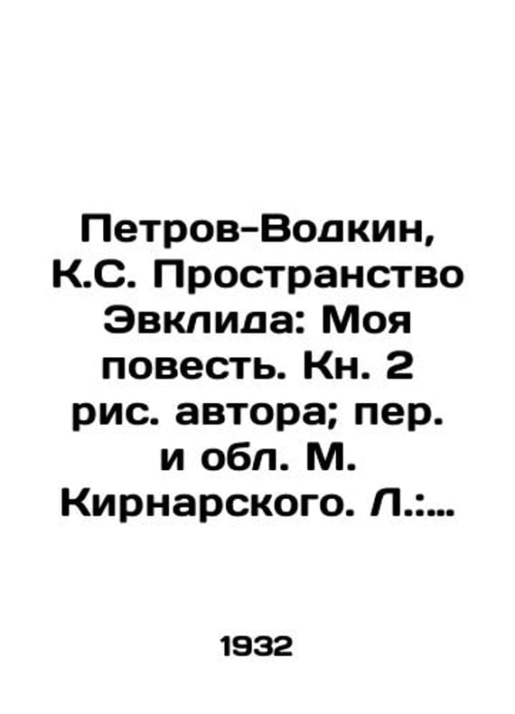 "Petrov-Vodkin, K.S. Euclids Space: My Story. Book 2 by the author; translation and region by M. Kirnarsky. L.: Publishing House of Writers in Leningrad, 1932.-340, 4 p.: il.; 20x14 sm./Petrov-Vodkin, K.S. Prostranstvo Evklida: Moya povest. Kn. 2 ris. avtora; per. i obl. M. Kirnarskogo. L.: Izd-vo pisateley v Leningrade, 1932.-340, 4 s.: il.; 20x14 sm. The first space of Euclid is the second part of the autobiographical diology My Story. Here Petrov-Vodkin emerges from Khlynovsks nest and tells how he, a simple country boy, became an artist. These are memories of his youth and of his most famous teachers and their friends: Serov, Korovin, Larionov, Levitan, Vrubel and many others. We have thousands of titles and often several copies of each title may be available. Please feel free to contact us for a detailed description of the copies available. SKUbd-cc7dd354d6ef5e03."