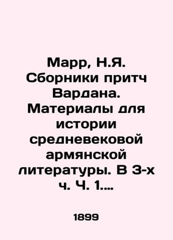 "Marr, N.Y. Collections of Vardans Parables. Materials for the History of Medieval Armenian Literature. At 3 oclock, Part 1. Study. St. Petersburg: Type of Imperial Academy of Sciences, 1899. XLI, 3, 594 p.; 26.5 - 19 sm./Marr, N.Ya. Sborniki pritch Vardana. Materialy dlya istorii srednevekovoy armyanskoy literatury. V 3 kh ch. Ch. 1. Issledovanie. ill.: Tip. Imperatorskoy Akademii nauk, 1899. XLI, 3, 594 s.; 26,5 - 19 sm. Marr, N.Y. Collections of Vardans Parables. Materials for the History of Medieval Armenian Literature. At 3 oclock, Part 1. Study. St. Petersburg: Type of Imperial Academy of Sciences, 1899. XLI, 3, 594 p.; 26.5 - 19 sm.We have thousands of titles and often several copies of each title may be available. Please feel free to contact us for a detailed description of the copies available. SKUbd-ccdc5bf371b234a."