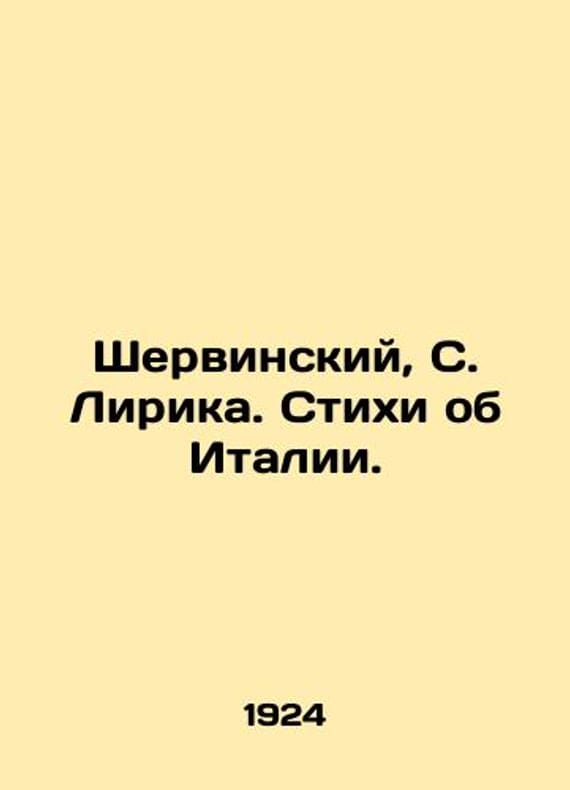 "Shervinsky, S. Lyrica. Poems about Italy./Shervinskiy, S. Lirika. Stikhi ob Italii. Shervinsky, S. Lyrica. Poems about Italy. Moscow: Authors Edition; Type. Russian Academy of Art Sciences, 1924. We have thousands of titles and often several copies of each title may be available. Please feel free to contact us for a detailed description of the copies available. SKUbd-ccdebdb2d3b36929."