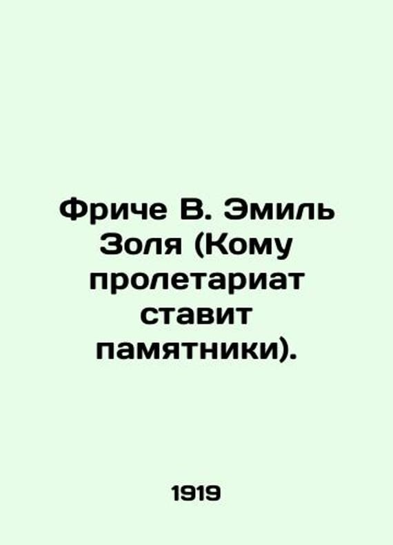 Fritsche W. Emile Zola (To whom the proletariat erects monuments)./Friche V. Emil Zolya (Komu proletariat stavit pamyatniki). Fritsche V. Emil Zola (To whom the proletariat places monuments). Moscow: Press Department of the Moscow Soviet of R. and K. D., 1919.-47 p. We have thousands of titles and often several copies of each title may be available. Please feel free to contact us for a detailed description of the copies available. SKUbd-cd2098ae383ccb9d.