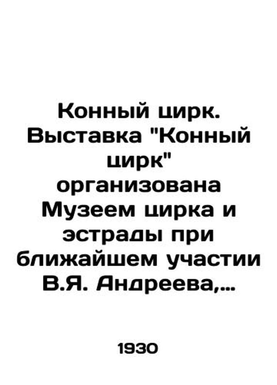 Horse Circus. Exhibition Horse Circus is organized by the Museum of Circus and Variety with close participation of V.Y. Andreev, E. Gershuni and Evg. Kuznetsov. /Konnyy tsirk. Vystavka Konnyy tsirk organizovana Muzeem tsirka i estrady pri blizhayshem uchastii V.Ya. Andreeva, E. Gershuni i Evg. Kuznetsova. Horse Circus. Exhibition Horse Circus is organized by the Museum of Circus and Variety with the close participation of V.Ya. Andreev, E. Gershuni and Evg. Kuznetsova. We have thousands of titles and often several copies of each title may be available. Please feel free to contact us for a detailed description of the copies available. SKUbd-cdf17cc2c6ae9f15.