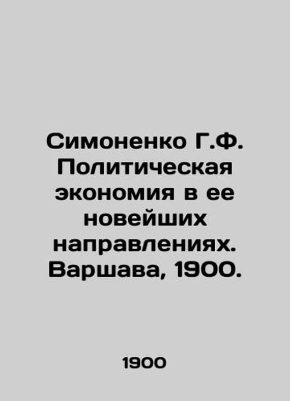 G.F. Simonenko: Political Economy in its New Directions. Warsaw, 1900./Simonenko G.F. Politicheskaya ekonomiya v ee noveyshikh napravleniyakh. Varshava, 1900. G.F. Simonenko: Political Economy in Its Recent Directions. Review and Critical Evaluation of the Teachings of the Principal Representatives of Modern Economic Science, especially the New Historical School. Warsaw: Varsh. type and lit. 1900.-2, LXVI, 509We have thousands of titles and often several copies of each title may be available. Please feel free to contact us for a detailed description of the copies available. SKUbd-ce32d73b5a9ab774.